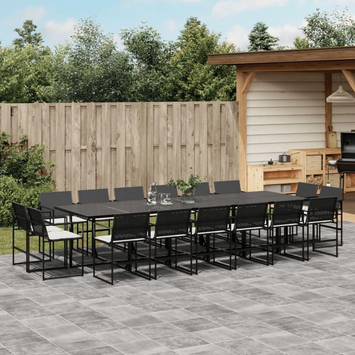 Ensemble a manger de jardin 17 pcs coussins noir resine tressee