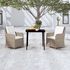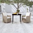 L'ensemble de salle a manger d'exterieur pratique a un cadre en acier, ce qui le rend solide et robuste. Les chaises de jardin sont faites de resine tressee resistante a l'eau et sans entretien, ce qui les rend parfaites pour une utilisation exterieure. La forme ergonomique et les coussins amovibles bien rembourres de mousse offrent un confort d'assise ultime. Les housses d'oreiller et de coussin en polyester necessitant peu d'entretien peuvent etre facilement retirees et lavees. De plus, le dessus de table en verre lisse est facile a nettoyer avec un chiffon humide et excellent pour placer repas, boissons et autres articles decoratifs.