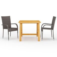 La table de salle a manger est en bois d'acacia massif avec une finition a l'huile, ce qui la rend stable, durable et facile a entretenir. Dotees d'un cadre en acier enduit de poudre recouvert de resine tressee resistante aux intemperies, ces chaises sont robustes et faciles a nettoyer. Les chaises d'exterieur sont legeres et peuvent etre empilees pour gagner de la place lorsqu'elles ne sont pas utilisees.