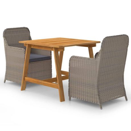 La table de salle a manger est fabriquee en bois d'acacia massif avec une finition a l'huile, ce qui la rend stable, durable et facile a entretenir. Dotees d'un cadre en acier enduit de poudre recouvert de resine tressee resistante aux intemperies, ces chaises de salle a manger sont robustes et faciles a nettoyer. La forme ergonomique et les coussins bien rembourres offriront le confort d'assise supreme. Les housses de coussin en polyester a faible entretien peuvent etre facilement retirees et lavees.
