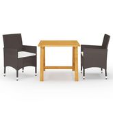 La table de salle a manger est en bois d'acacia massif avec une finition a l'huile, ce qui la rend stable, durable et facile a entretenir. Dotees d'un cadre en acier enduit de poudre recouvert de resine tressee resistante aux intemperies, ces chaises sont robustes et faciles a nettoyer. Conçue avec un dossier et un accoudoir incurves, la chaise a dîner a une forme plus ergonomique pour un confort maximal. Chaque siege est dote d'un coussin rembourre amovible pour ajouter du confort pendant votre temps de detente.