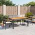 - Materiau : resine tressee, acier enduit de poudre, bois d'acacia massif avec finition a l'huile