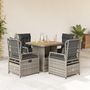 Ensemble a manger de jardin 5 pcs coussins gris resine tressee