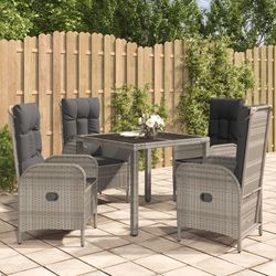 Ensemble a manger de jardin 5 pcs coussins gris resine tressee