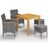 La table de salle a manger est en bois d'acacia massif avec une finition a l'huile, ce qui la rend stable, durable et facile a entretenir. Dotes d'un cadre en acier enduit de poudre recouvert de resine tressee resistante aux intemperies, ces chaises et tabourets sont robustes et faciles a nettoyer. Conçue avec un dossier et des accoudoirs incurves, la chaise a dîner a une forme plus ergonomique pour un confort maximal. De plus, les accoudoirs sont joliment decores avec du bois d'acacia massif, ce qui apporte une touche de charme rustique. Chaque siege est dote d'un coussin rembourre amovible pour ajouter du confort pendant votre temps de detente.