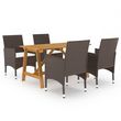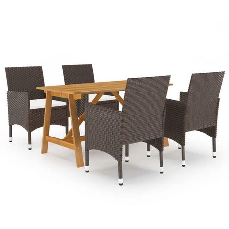 La table de salle a manger est en bois d'acacia massif avec une finition a l'huile, ce qui la rend stable, durable et facile a entretenir. Dotees d'un cadre en acier enduit de poudre recouvert de resine tressee resistante aux intemperies, ces chaises sont robustes et faciles a nettoyer. Conçue avec un dossier et un accoudoir incurves, la chaise a dîner a une forme plus ergonomique pour un confort maximal. Chaque siege est dote d'un coussin rembourre amovible pour ajouter du confort pendant votre temps de detente.