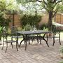 Cet ensemble de salle a manger de jardin, au design elegant et contemporain, sera un excellent choix pour manger ou vous detendre dans le jardin. Structure robuste et durable : l'ensemble de salle a manger de jardin, fabrique en fonte d'aluminium, est suffisamment robuste et durable pour assurer un