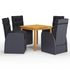 La table de salle a manger est fabriquee en bois d'acacia massif avec une finition a l'huile, ce qui la rend stable, durable et facile a entretenir. Dotees d'un cadre en acier enduit de poudre recouvert de resine tressee resistante aux intemperies, ces chaises de salle a manger sont robustes et faciles a nettoyer. Le dossier s'inclinera en tirant sur le bouton situe sur le cote. Grace a leur construction legere, les chaises sont faciles a deplacer. Elles sont egalement livrees avec des coussins hautement confortables et bien rembourres pour un confort supreme. Les housses en polyester necessitant peu d'entretien peuvent egalement etre enlevees et lavees.