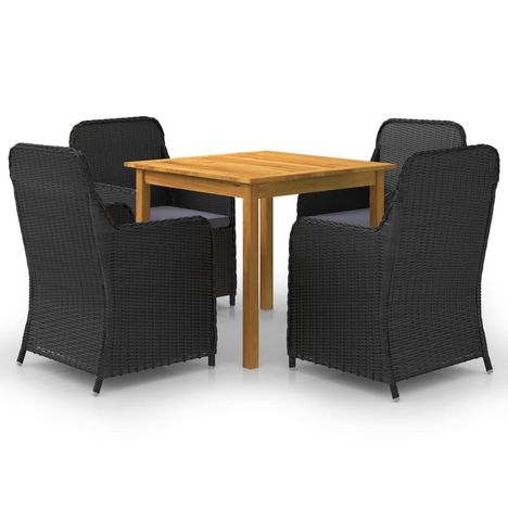 La table de salle a manger est fabriquee en bois d'acacia massif avec une finition a l'huile, ce qui la rend stable, durable et facile a entretenir. Dotees d'un cadre en acier enduit de poudre recouvert de resine tressee resistante aux intemperies, ces chaises de salle a manger sont robustes et faciles a nettoyer. La forme ergonomique et les coussins bien rembourres offriront le confort d'assise supreme. Les housses de coussin en polyester a faible entretien peuvent etre facilement retirees et lavees.