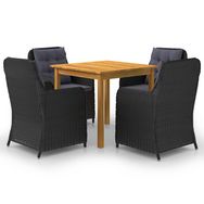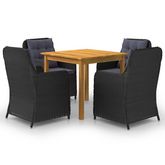 La table de salle a manger est fabriquee en bois d'acacia massif avec une finition a l'huile, ce qui la rend stable, durable et facile a entretenir. Dotees d'un cadre en acier enduit de poudre recouvert de resine tressee resistante aux intemperies, ces chaises de salle a manger sont robustes et faciles a nettoyer. La forme ergonomique et les coussins bien rembourres offriront le confort d'assise supreme. Les housses de coussin en polyester a faible entretien peuvent etre facilement retirees et lavees.