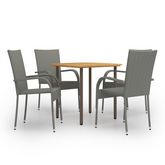 La table de salle a manger est fabriquee en bois d'acacia massif et en acier durable, ce qui la rend robuste et stable. La surface a finition a l'huile la rend egalement adaptee pour une utilisation en exterieur. Dotees d'un cadre en acier recouvert de resine tressee resistante aux intemperies, les chaises sont robustes et faciles a nettoyer. Ces chaises de jardin peuvent etre empilees pour economiser de l'espace lorsqu'elles ne sont pas utilisees.