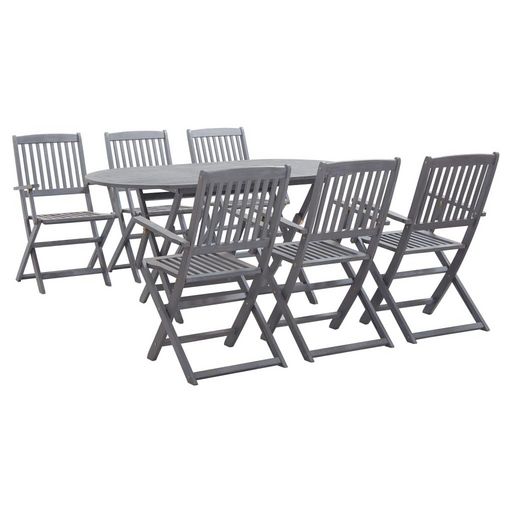 Ensemble a manger de jardin 7 pcs Bois d'acacia massif Gris