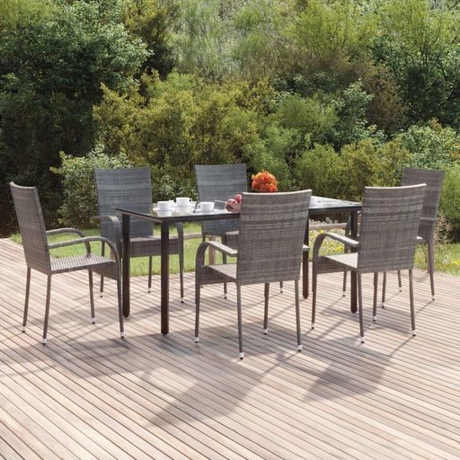 Ensemble a manger de jardin 7 pcs Gris Resine tressee