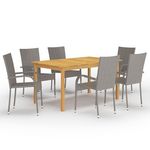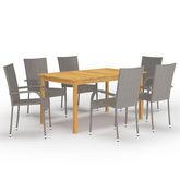 La table de salle a manger est en bois d'acacia massif avec une finition a l'huile, ce qui la rend stable, durable et facile a entretenir. Dotees d'un cadre en acier enduit de poudre recouvert de resine tressee resistante aux intemperies, ces chaises sont robustes et faciles a nettoyer. Les chaises d'exterieur sont legeres et peuvent etre empilees pour gagner de la place lorsqu'elles ne sont pas utilisees.