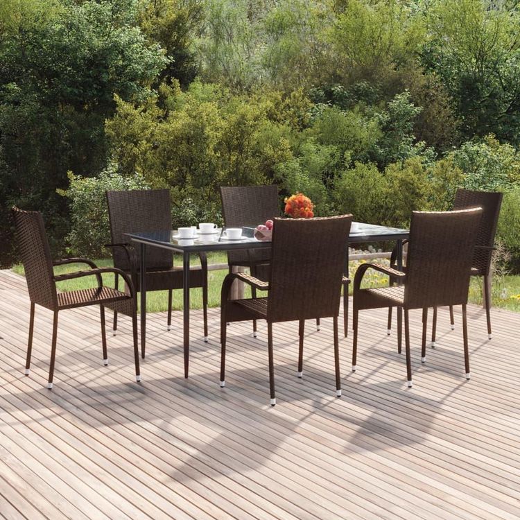 Ensemble a manger de jardin 7 pcs Marron Resine tressee