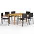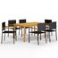 La table de salle a manger est en bois d'acacia massif avec une finition a l'huile, ce qui la rend stable, durable et facile a entretenir. Dotees d'un cadre en acier enduit de poudre recouvert de resine tressee resistante aux intemperies, ces chaises sont robustes et faciles a nettoyer.