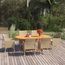 La table a manger est fabriquee en bois d'acacia massif, ce qui la rend robuste et stable. La surface a finition a l'huile la rend egalement adaptee pour une utilisation en exterieur. Dotees d'un cadre en acier recouvert de resine tressee resistante aux intemperies, les chaises sont robustes et faciles a nettoyer. Les coussins bien rembourres ajoutent egalement un confort d'assise supplementaire a votre temps de detente.