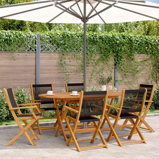 Ensemble a Manger de jardin 7pcs noir polypropylene bois massif