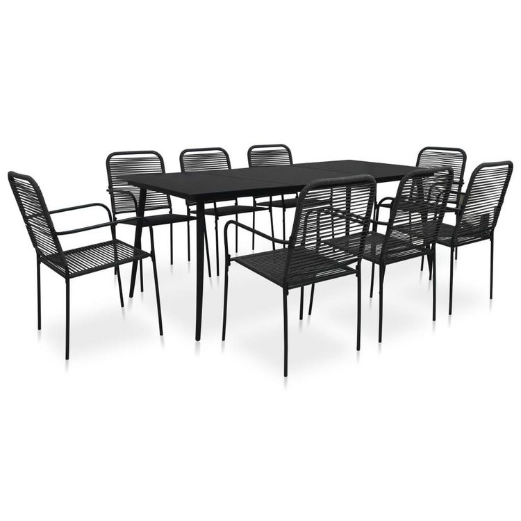 Ensemble a manger de jardin 9 pcs Corde en coton et acier Noir