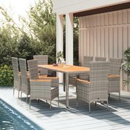 Ensemble a manger de jardin 9 pcs coussins gris resine tressee