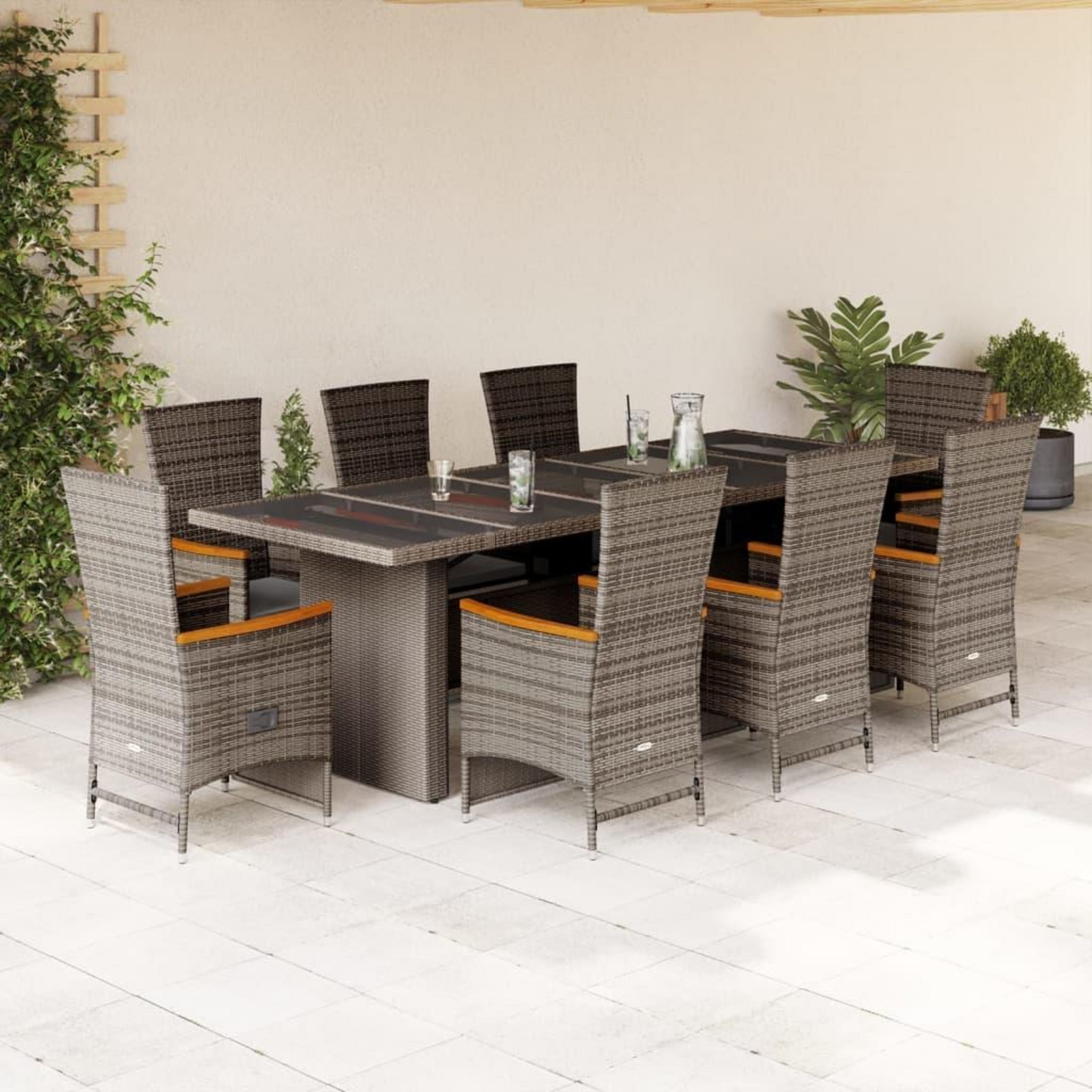 Ensemble a manger de jardin 9 pcs coussins gris resine tressee