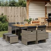 Ensemble a manger de jardin 9 pcs coussins gris resine tressee