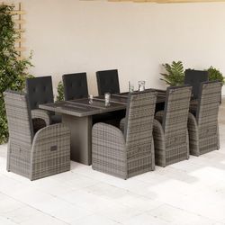 Ensemble a manger de jardin 9 pcs coussins gris resine tressee