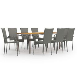 Ensemble a manger de jardin 9 pcs Resine tressee Gris