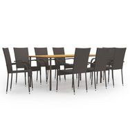 Ensemble a manger de jardin 9 pcs Resine tressee Marron