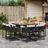 Ensemble a manger de jardin 9pcs coussins noir resine tressee