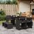 Ensemble a manger de jardin 9pcs coussins noir resine tressee