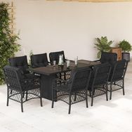 Ensemble a manger de jardin 9pcs coussins noir resine tressee