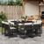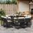 Ensemble a manger de jardin 9pcs coussins noir resine tressee