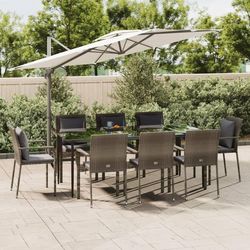 Ensemble a manger de jardin 9pcs et coussins noir et gris
