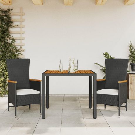 Ensemble a manger de jardin avec coussins 3 pcs Noir