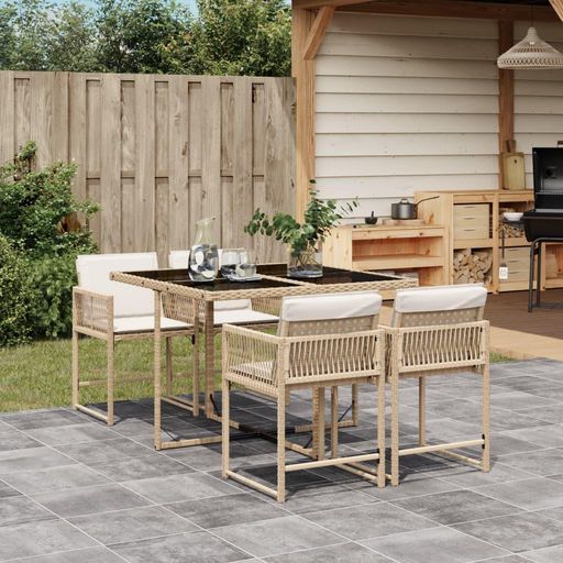 Ensemble a manger de jardin avec coussins 5pcs Beige poly rotin