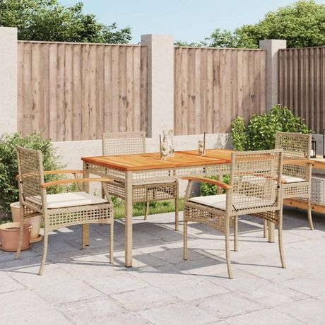 Ensemble a manger de jardin avec coussins 5pcs Beige poly rotin
