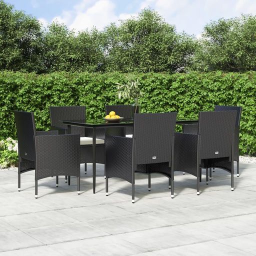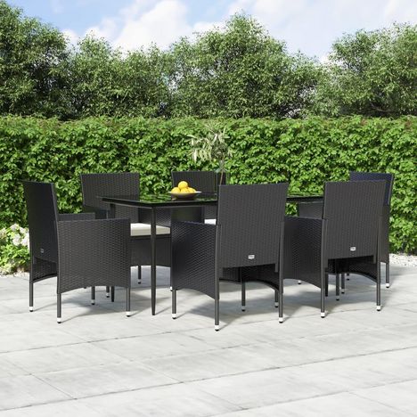 Ensemble a manger de jardin avec coussins 7 pcs Noir