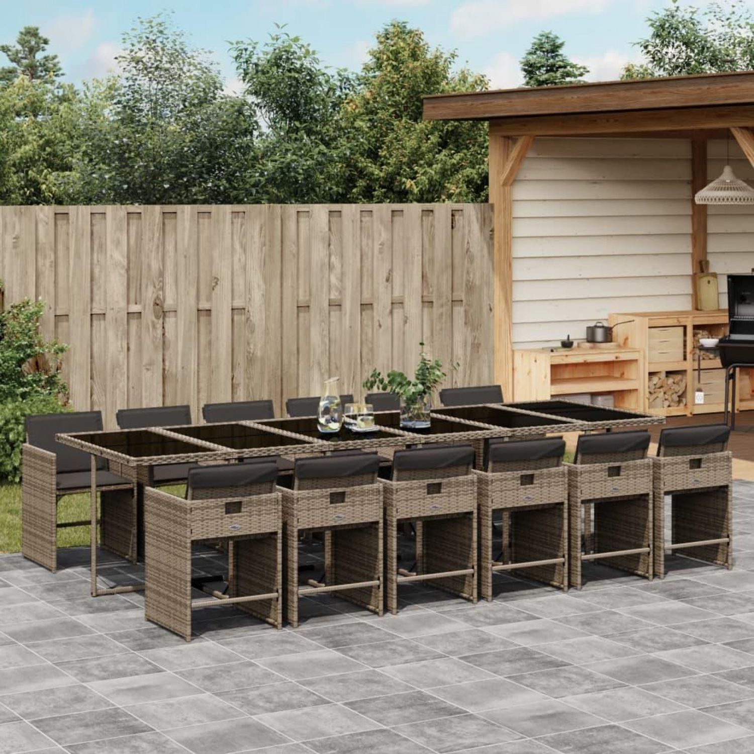 Ensemble a manger de jardin coussins 13 pcs gris resine tressee