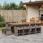Ensemble a manger de jardin coussins 13 pcs gris resine tressee