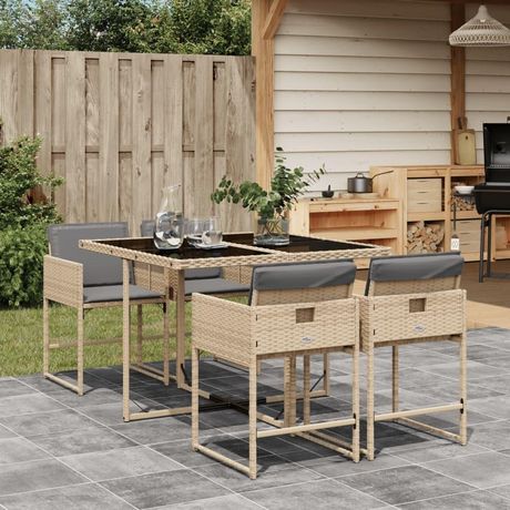Ensemble a manger de jardin coussins 5 pcs melange beige rotin