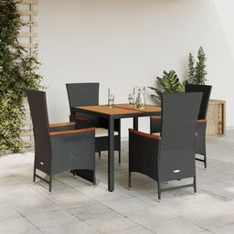 Ensemble a manger de jardin coussins 5pcs Noir Resine tressee