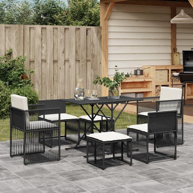 Ensemble a manger de jardin coussins 7 pcs noir resine tressee