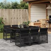 Ensemble a manger de jardin coussins 7 pcs noir resine tressee