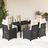 Ensemble a manger de jardin coussins 7pcs Noir Resine tressee