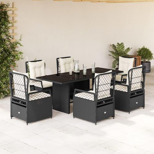 Ensemble a manger de jardin coussins 7pcs Noir Resine tressee