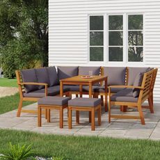 Avec son design intemporel, cet ensemble de salle a manger de jardin en bois avec coussins ajoute une touche de charme rustique a votre patio, terrasse ou jardin.