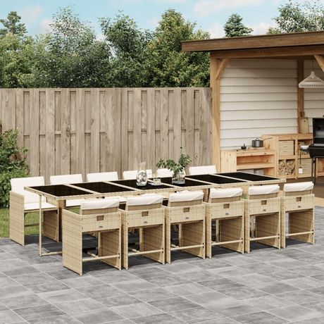 Ensemble a manger de jardin et coussins 13 pcs beige