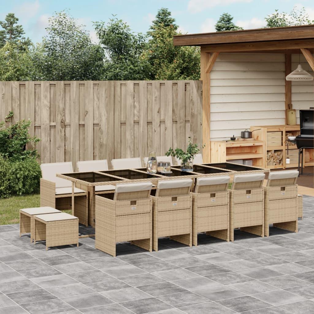 Ensemble a manger de jardin et coussins 15 pcs beige