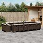 Ensemble a manger de jardin et coussins 17 pcs marron rotin